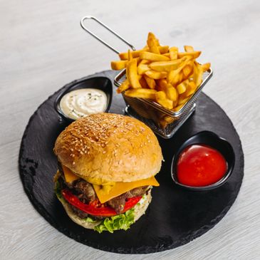 Oferecemos uma variedade de pizzas e hamburgers, todos preparados com muito carinho. Cada prato é feito para proporcionar uma experiência gastronômica única e deliciosa.